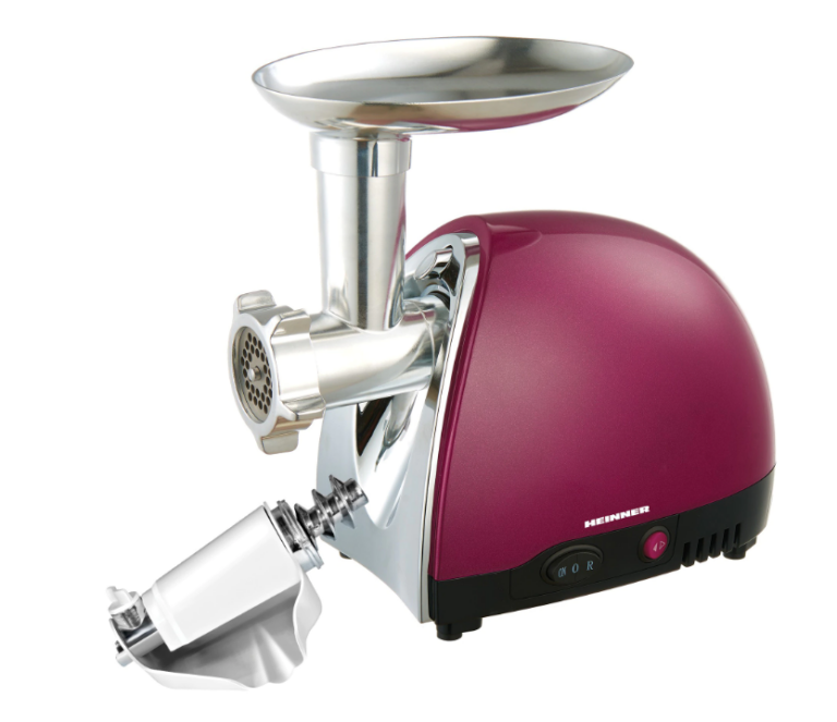 Masina de tocat Heinner MG1500TA-BG, 1600 W, Accesoriu pentru rosii si carnati, Cutit inox, Visiniu sidefat
