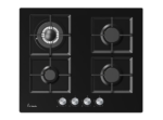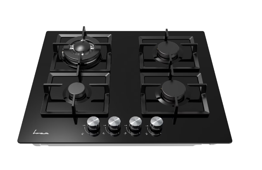 Plita incorporabila Fram FBH-M4IWF-GBK, Gaz, 4 arzatoare, Gratar fonta, Wok, Aprindere electrica, Dispozitiv de siguranta, 60 cm, Sticla neagra
