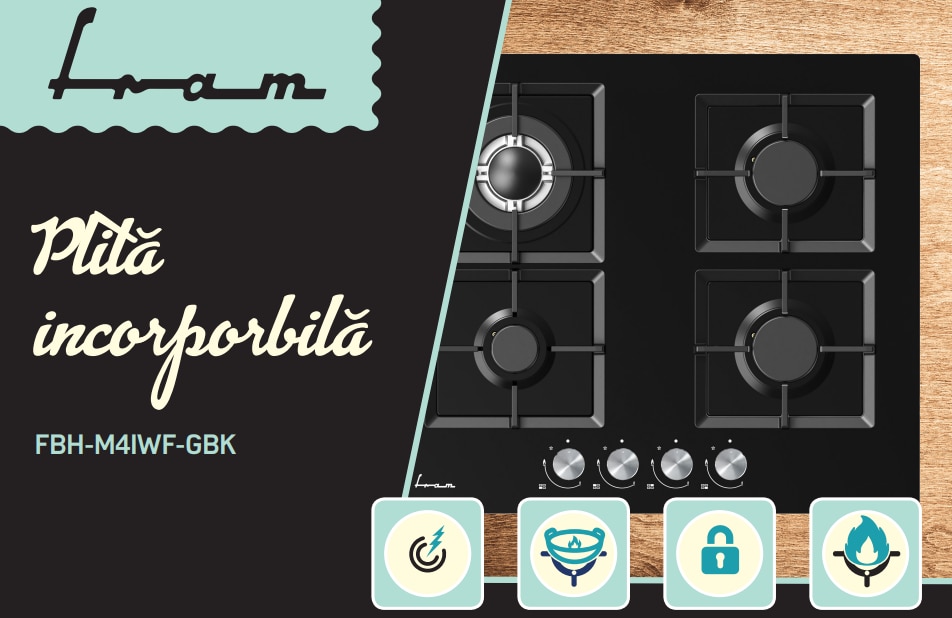 Fii primul care scrii o recenzie pentru „Plita incorporabila Fram FBH-M4IWF-GBK, Gaz, 4 arzatoare, Gratar fonta, Wok, Aprindere electrica, Dispozitiv de siguranta, 60 cm, Sticla neagra”